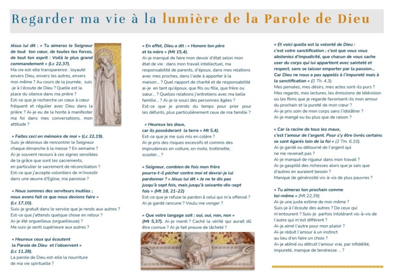 Dans la constitution pastorale Gaudium et spes, il est dit que "c'est le noyau le plus secret de l'homme et le tabernacle dans lequel il est seul avec Dieu, dont la voix résonne dans les recoins les plus secrets de son cœur. C'est la conscience qui, de manière admirable, fait connaître cette loi dont l'accomplissement consiste dans l'amour de Dieu et du prochain" (n. 16).